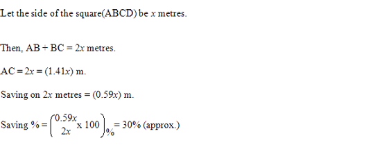 08. A man walked diagonally across a square lot. Approximately, what was the percent saved by not walking along the edges?