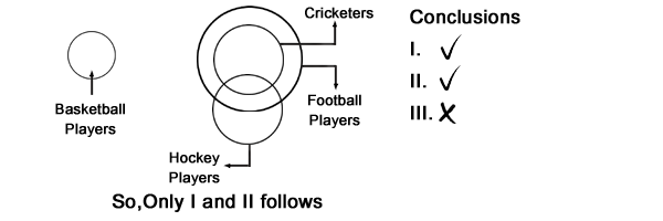 04. Statements All cricketers are football players. Some hockey players are cricketers. No football player is a basketball player. No basketball player is a hockey player.